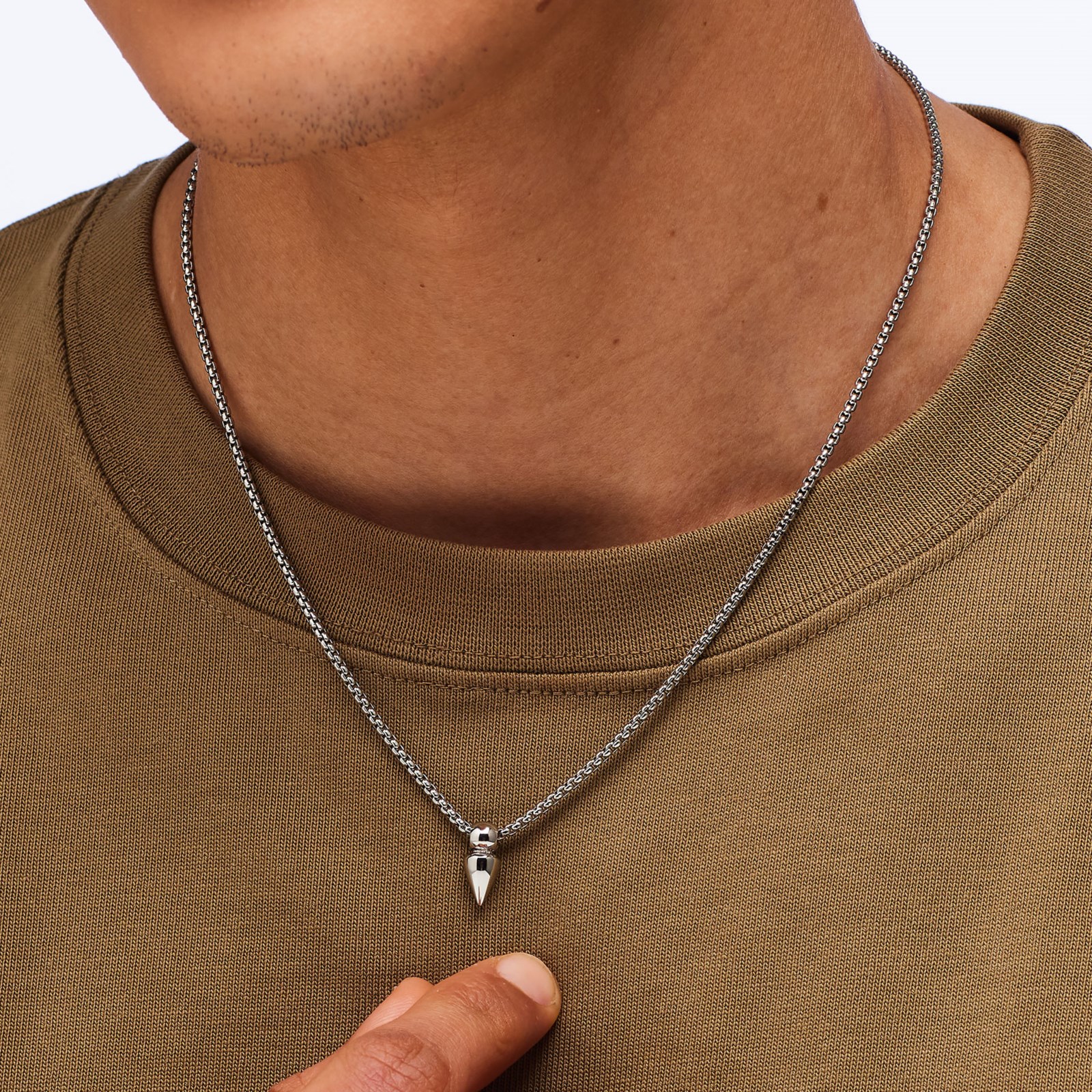 Collana uomo sagapò, SRG02, collezione rogue, in acciaio 316L con pendente a punta. lunghezza 50cm