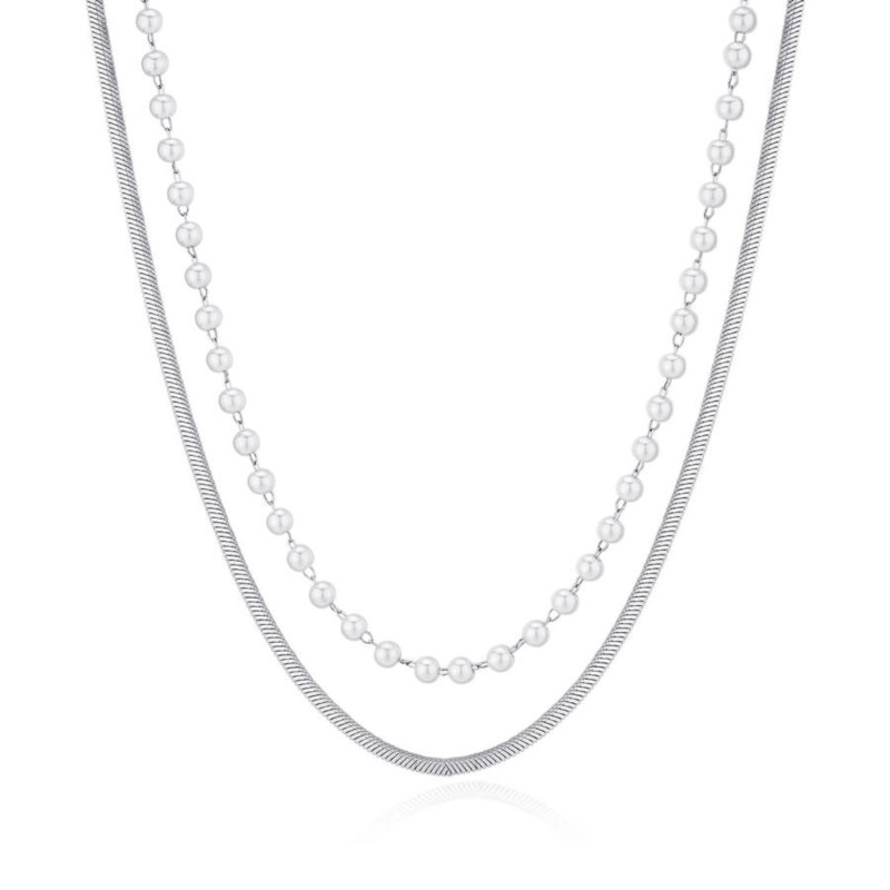 Collana donna s'agapo, SWI05, collezione wisdom, in acciaio con perle, lunghezza 46cm