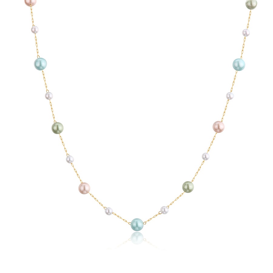 Collana donna s'agapo, SWI08, collezione wisdom, in acciaio 316L con finitura in pvd oro 14K e perle colorate, lunghezza 44cm