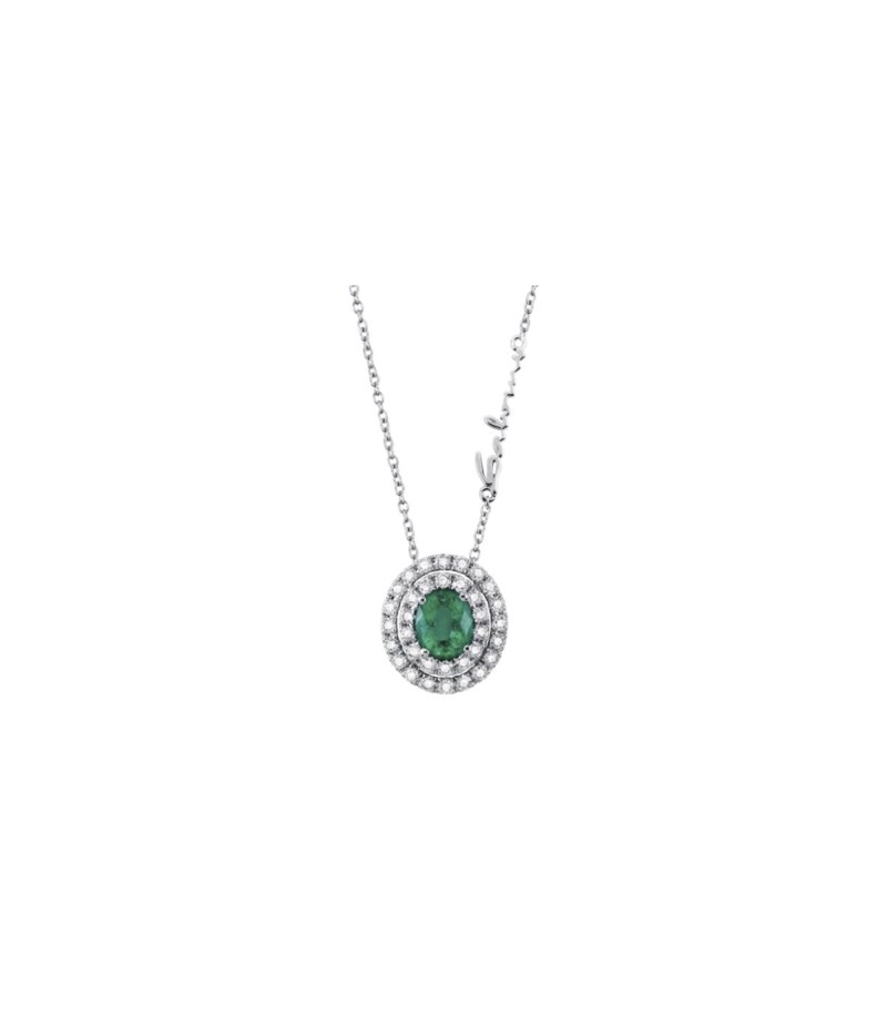 Collana donna salvini, 20057686, collezione dora, in oro bianco 18 kt, smeraldo e diamante 0.23 ct, colore gh