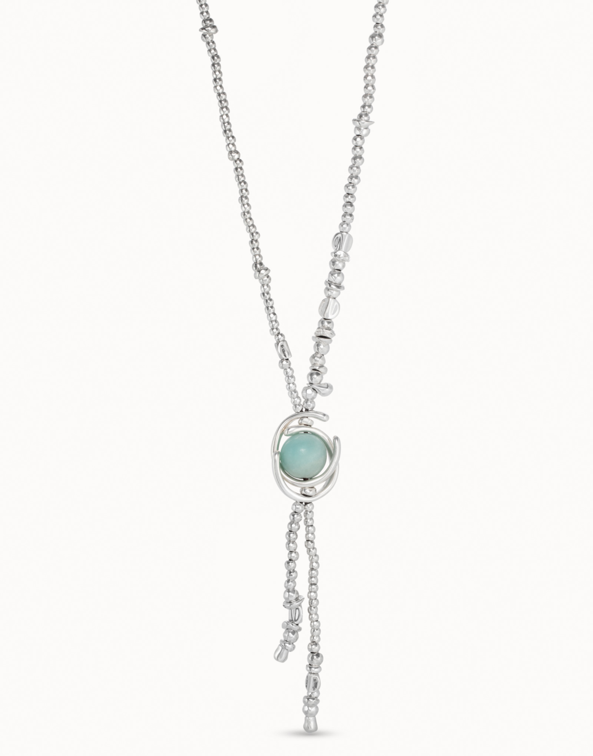 Collana donna uno de 50, COL1688AZUMTL0U, collezione sterling, placcata argento Sterling dal design a frusta e un ciondolo a doppia luna con un’amazzonite centrale.