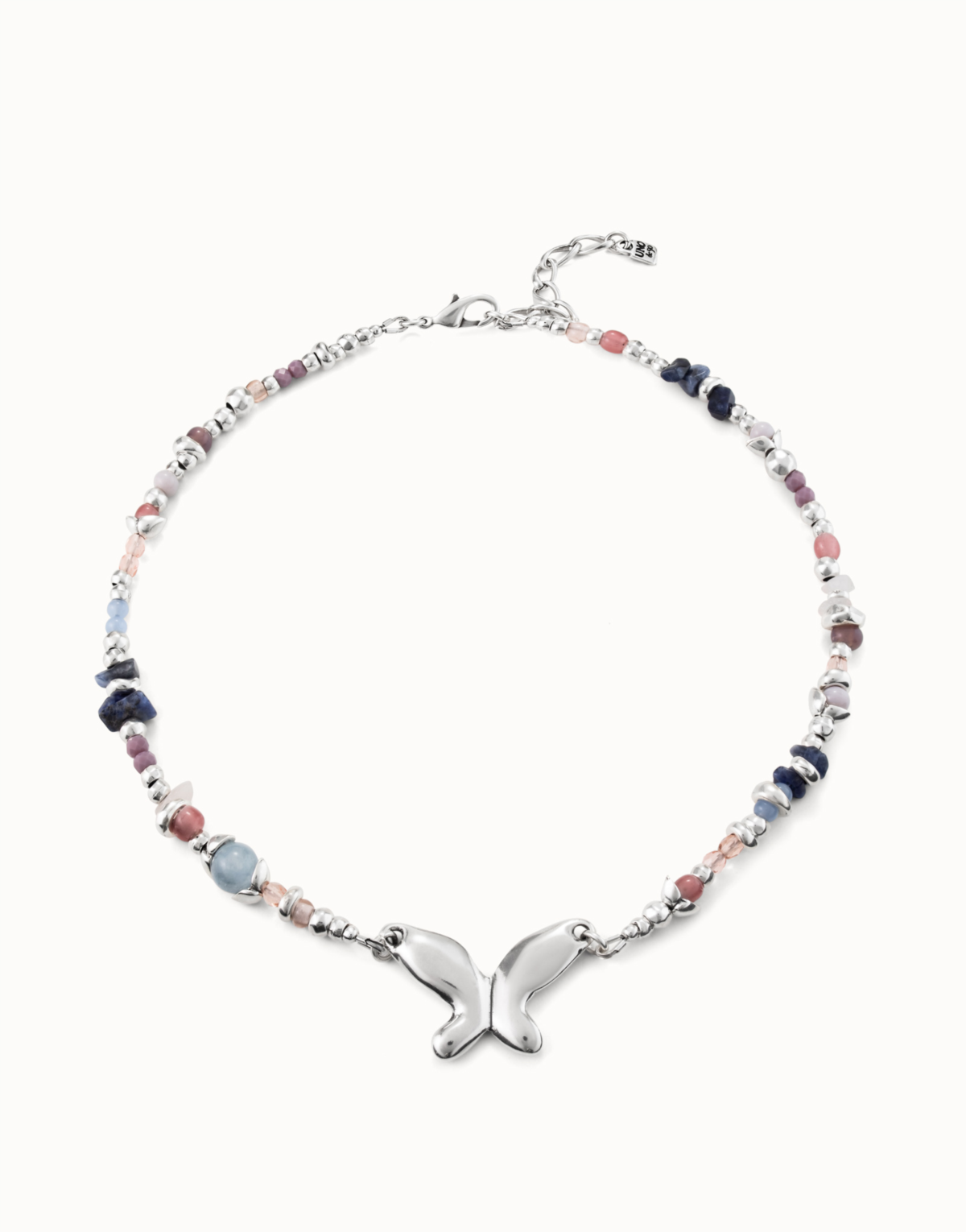 Collana donna uno de 50, COL1858MCLMTL0U, collezione sterling, placcata argento Sterling che combina un assortimento di sfere e cristalli multicolore con una farfalla centrale.