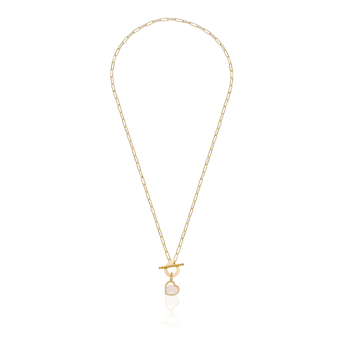 Collana donna unoaerre, 4065, collezione batticuore, in oro giallo 9kt, pendente a forma di cuore in madreperla, lunghezza 40, 5cm