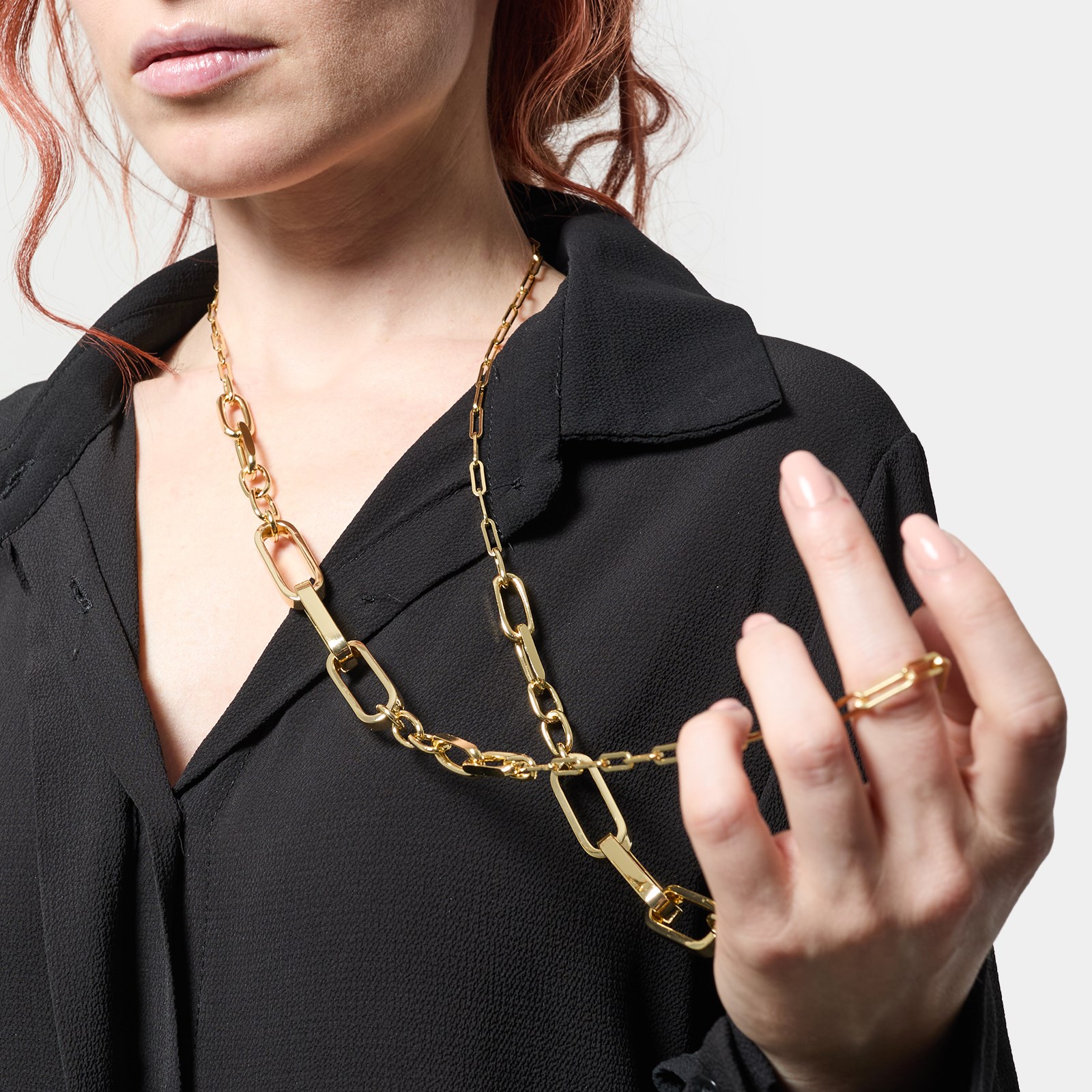 Collana donna unoaerre, 2639, collezione chanel, in bronzo dorato, misura 106cm