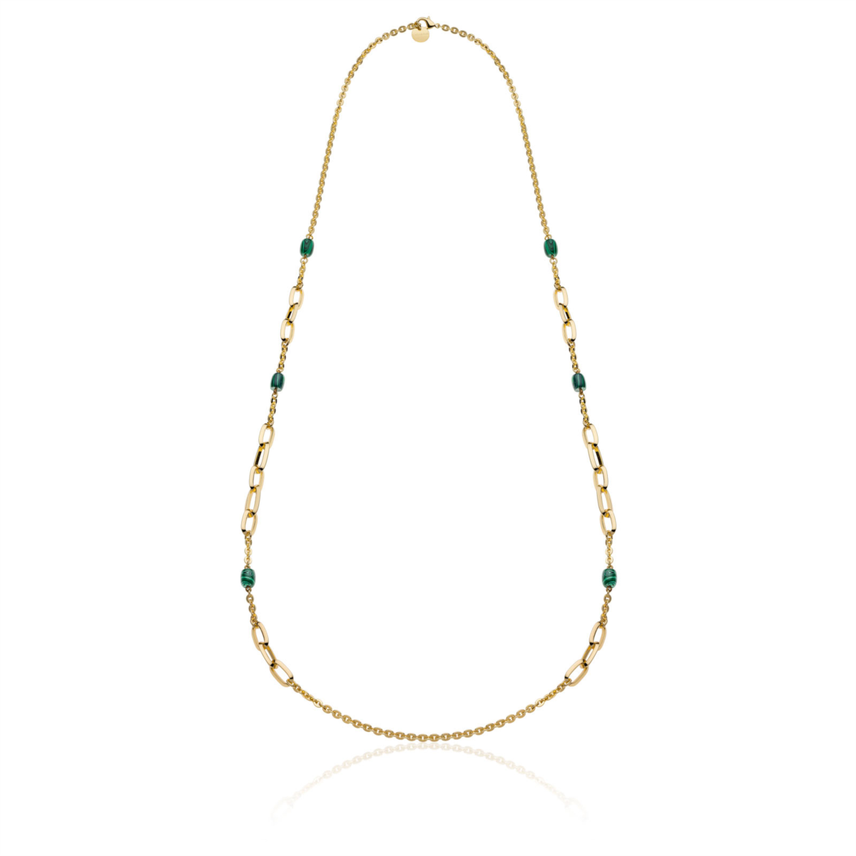 Collana donna unoaerre, 2198, collezione classica, in bronzo dorato e malachite verde, lunghezza 113cm