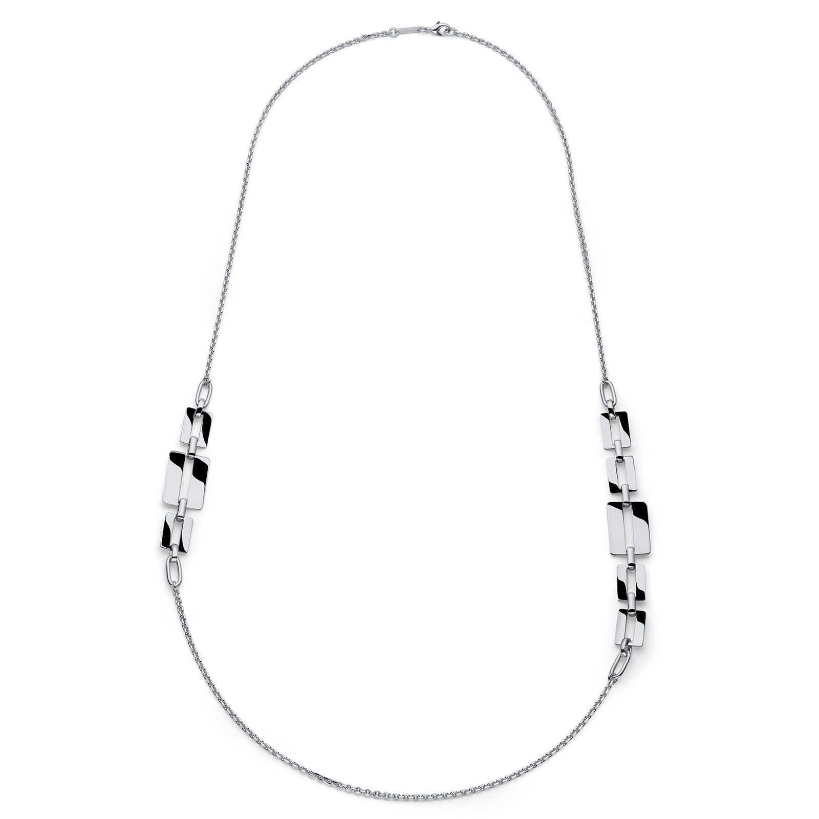 Collana donna unoaerre, 2654, collezione dinamica, in bronzo colore argento, con forme geometriche asimmetriche. lunghezza 93, 00 cm.