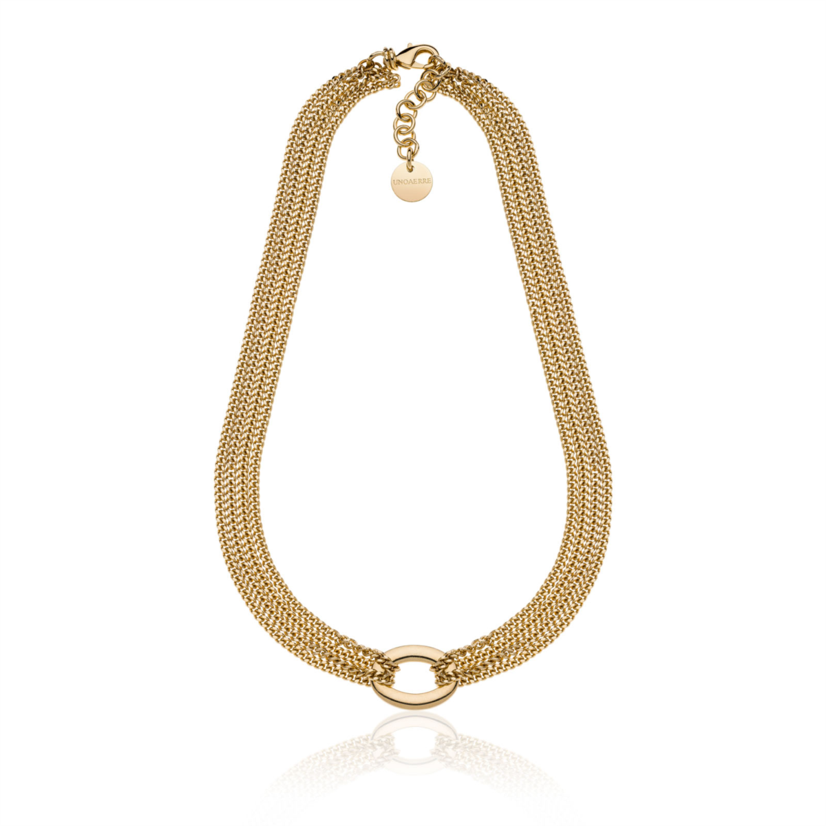 Collana donna unoaerre, 2247, collezione infinity, in bronzo dorato, lunghezza 45cm+2cm