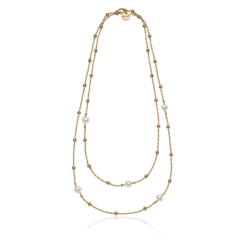 Collana donna unoaerre, 2061, collezione rosario, in bronzo dorato con perle, lunghezza 120cm