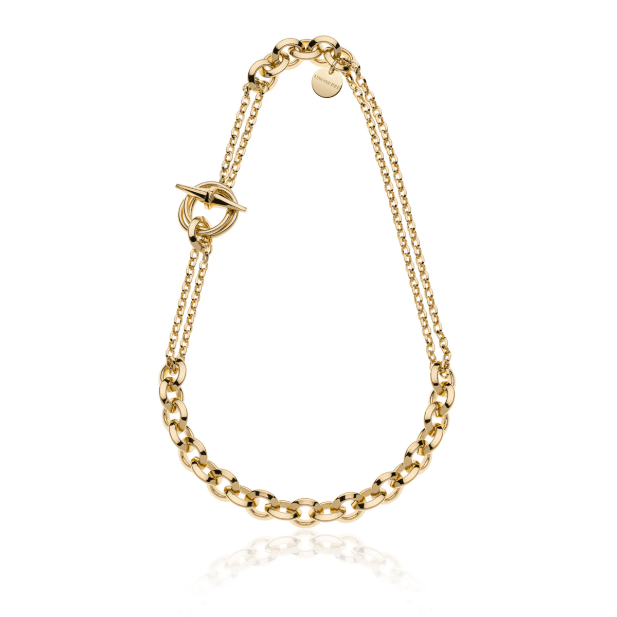Collana donna unoaerre, 2222, collezione triangoli, in bronzo dorato, lunghezza 44cm