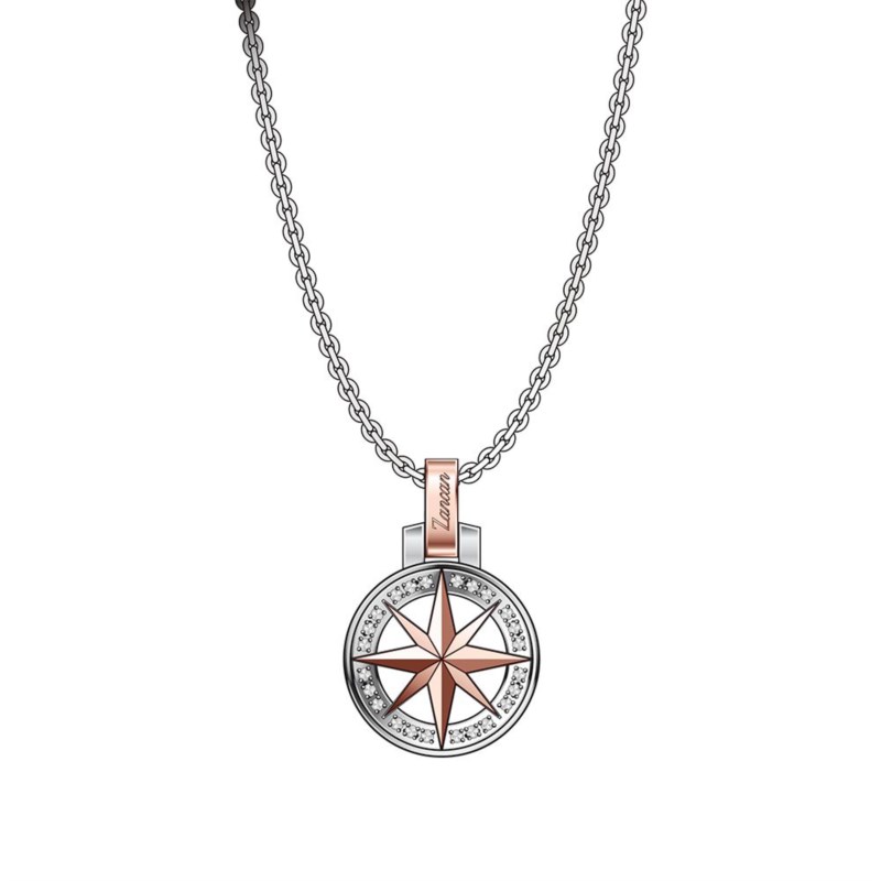 Collana uomo zancan, EHC154, collezione hi teck, in acciaio/acciaio rosa con zirconi, lunghezza 50cm