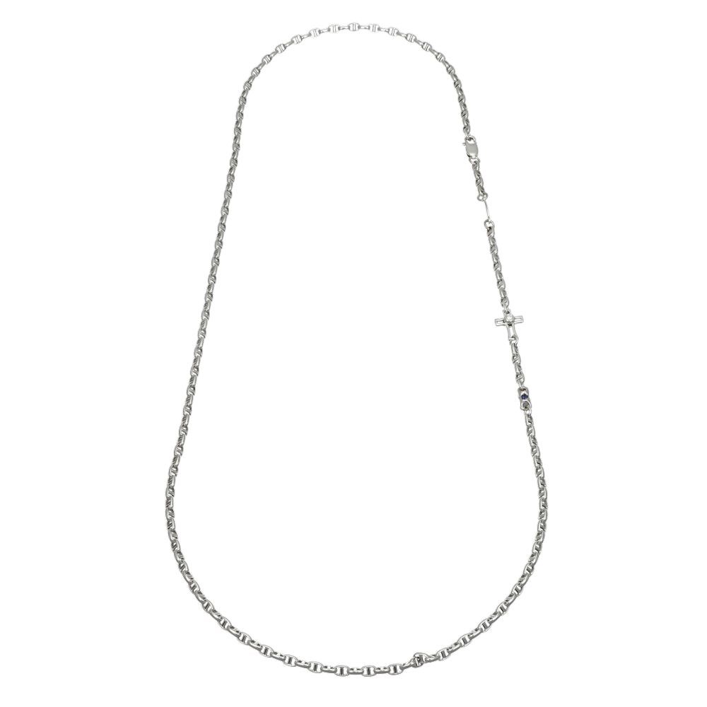 Collana uomo zancan, EC864B-ZB-50, collezione insignia gold, in oro bianco 18kt e diamanti 0.03ct e zaffiro 0.08ct, misura 50cm