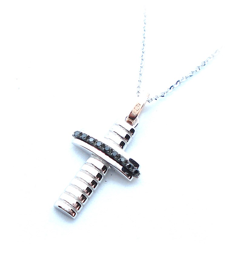 Collana uomo zancan, EC765BR, collezione insignia gold, in oro bianco 18kt e diamanti 0, 050ct, lunghezza 50cm