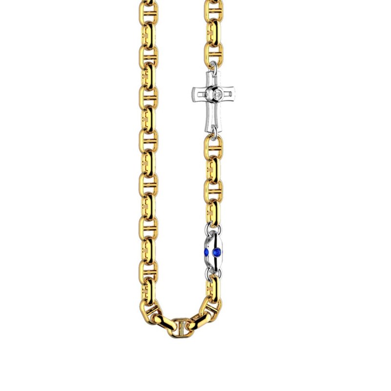 Collana uomo zancan, EC864GB-ZB, collezione insignia gold, in oro giallo 18kt con inserti in oro bianco 18kt, diamante 0.03ct e zaffiro 0.08ct