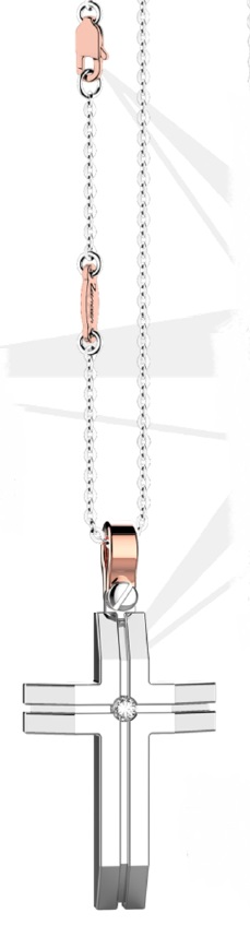 Collana uomo zancan, EC868BR, collezione insignia gold, in oro bianco 18kt/oro rosa 18kt e diamanti 0.04ct