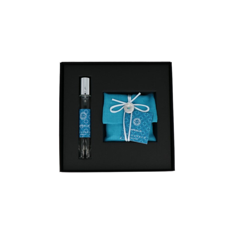 Kit viaggio unisex locherber, 410403 KIT VIAGGIO CAPRI BLUE, collezione capri blue, sacchettino di lino e profumo capri blue 10ml. Fragranza agrumata fresca aromatica, unisex che presenta note di testa di Arancia, Limone, Mandarino di Sicilia abbinate a Cardamomo, Zagara, Foglie di The per terminare con Vaniglia caramellata e Muschio Bianco.