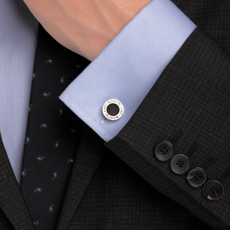 Gemelli uomo mont black, 107463 , collezione meisterstück, novità, in acciaio pregiato con inserto in onice nera