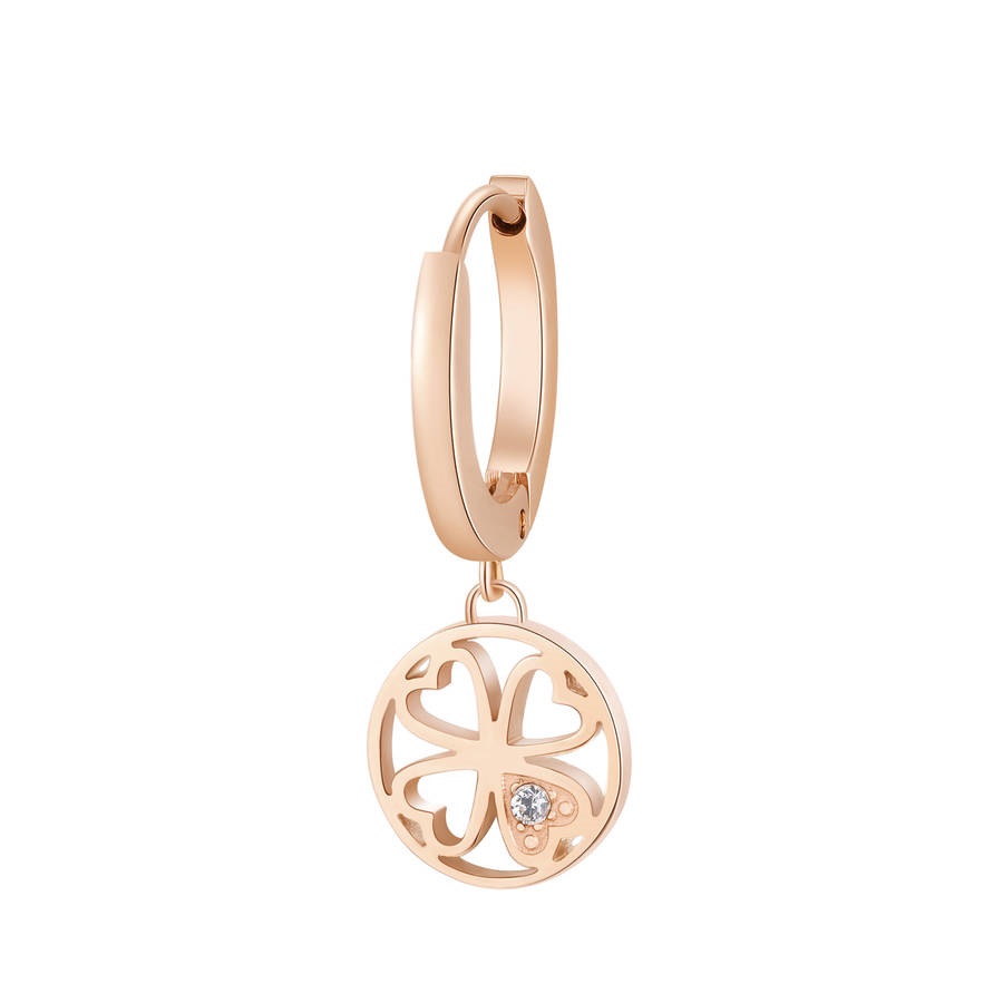 Mono orecchini donna brosway, Bhke003, collezione chakra, in acciaio rosato, pendente quadrifolgio con cristalli Swarovski, misura 25mm