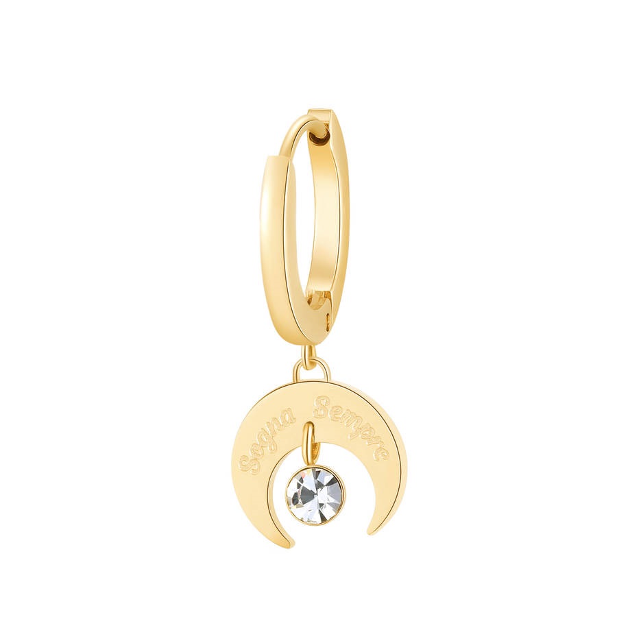 Mono orecchino donna brosway, Bhke008, collezione chakra, in acciaio dorato, pendente mezzaluna con cristalli, misura 25mm