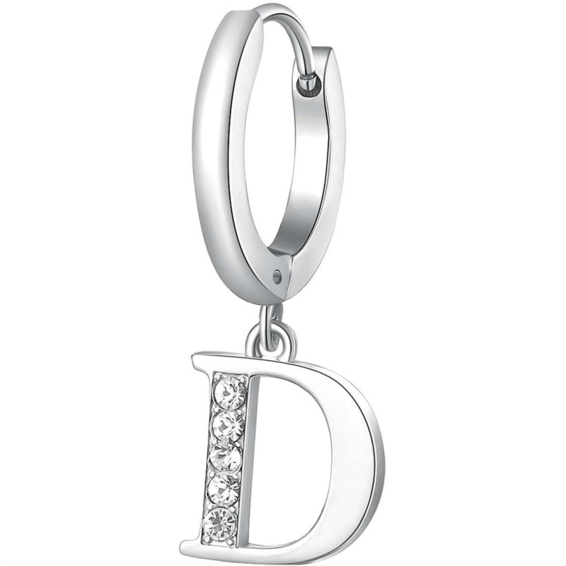 Mono orecchino donna Brosway, BHKE060, collezione Chakra, in acciaio con lettera D e cristalli, misura 24Mm