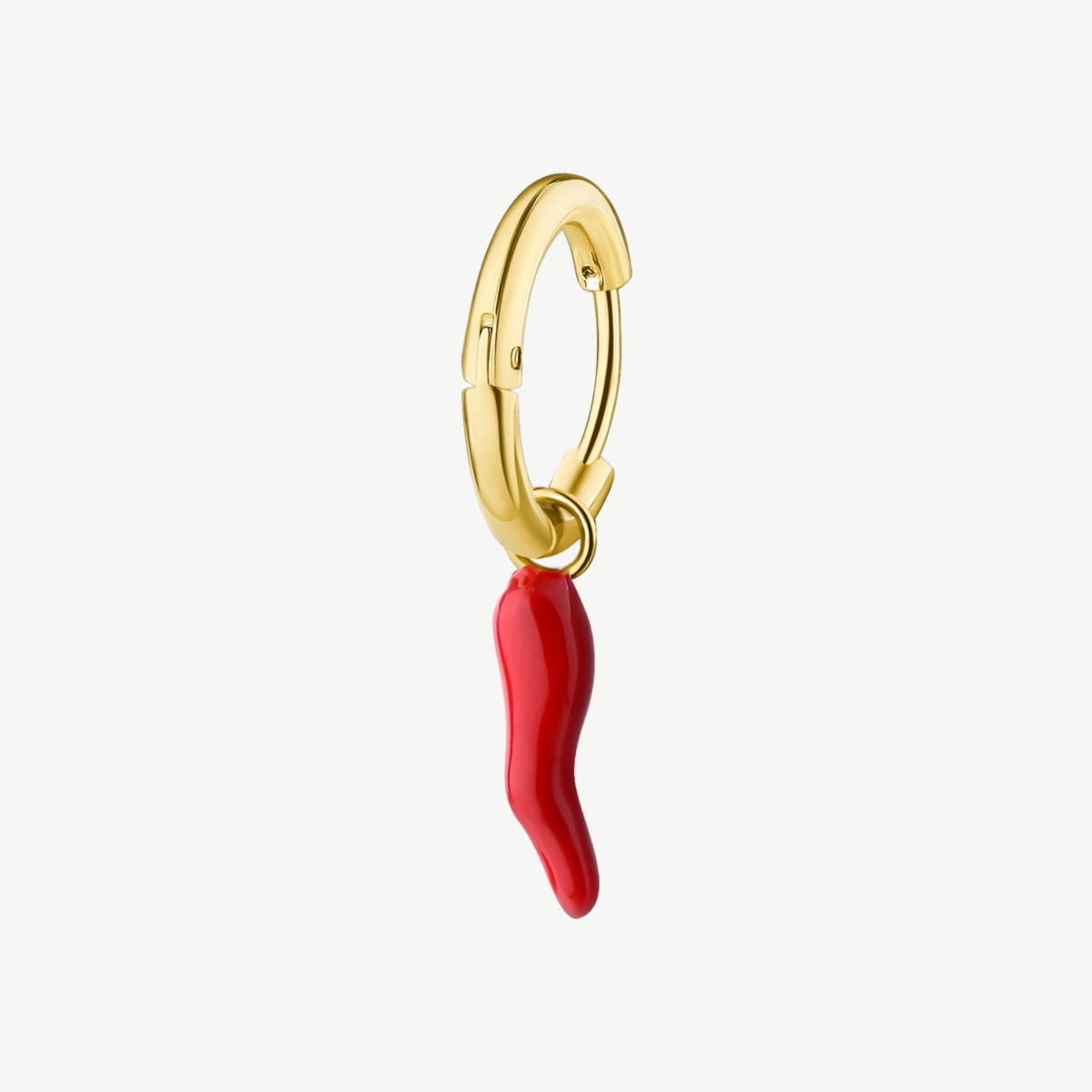 Monorecchino donna brosway, BHKE138, collezione chakra, in acciaio dorato con pendente a forma di cornetto smaltato rosso