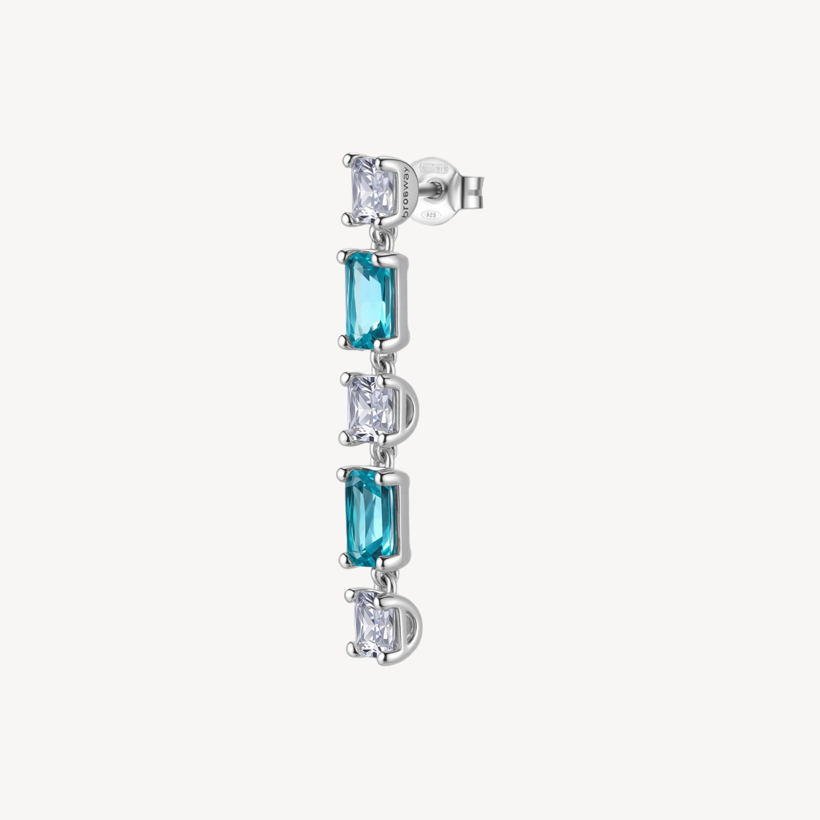Monorecchino donna brosway, FAG19, collezione fancy, in argento rodiato 925‰ con cushion cubic zirconia chiari e baguette cubic zirconia colore paraiba.