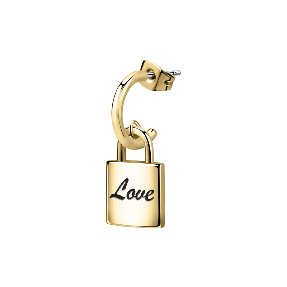 Mono orecchino donna la petite story, Lps02asd08, collezione love, in ottone dorato con pendente lucchetto, misura 1, 9cm