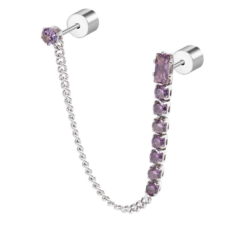 Monorecchino multindosso donna marlù, 31OR0003-P, collezione sparkles, in acciaio Formato da una catena a tennis con cubic zirconia, al cui vertice si trova un cubic zirconia a baguette, e da una catena a grumetta nella cui parte finale si trova il secondo orecchino, removibile, con cubic zirconia con diametro 3 mm.