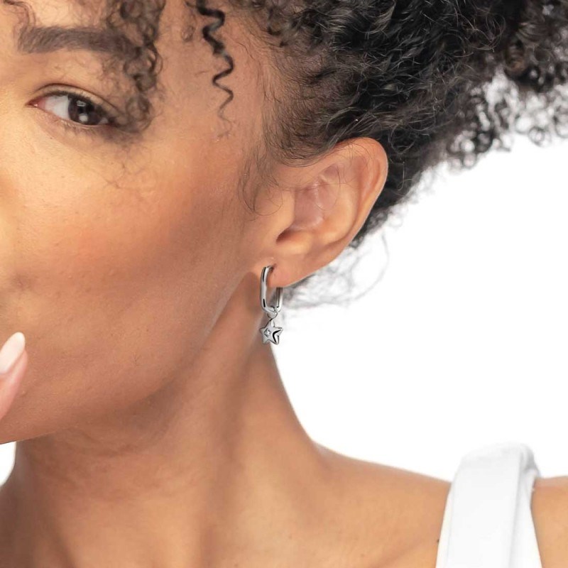 Monorecchino donna marlù, 18OR120, collezione time to, in acciaio, chiusura a pressione e pendente a forma di stella con al centro un cubic zirconia bianco. Lunghezza totale 2, 1 cm.