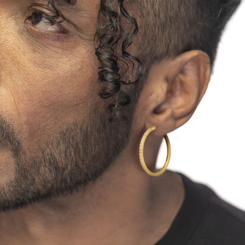 Monorecchino unisex marlù, 31OR0028G-W, collezione vision, in acciaio dorato e zirconi, diametro 3, 2cm