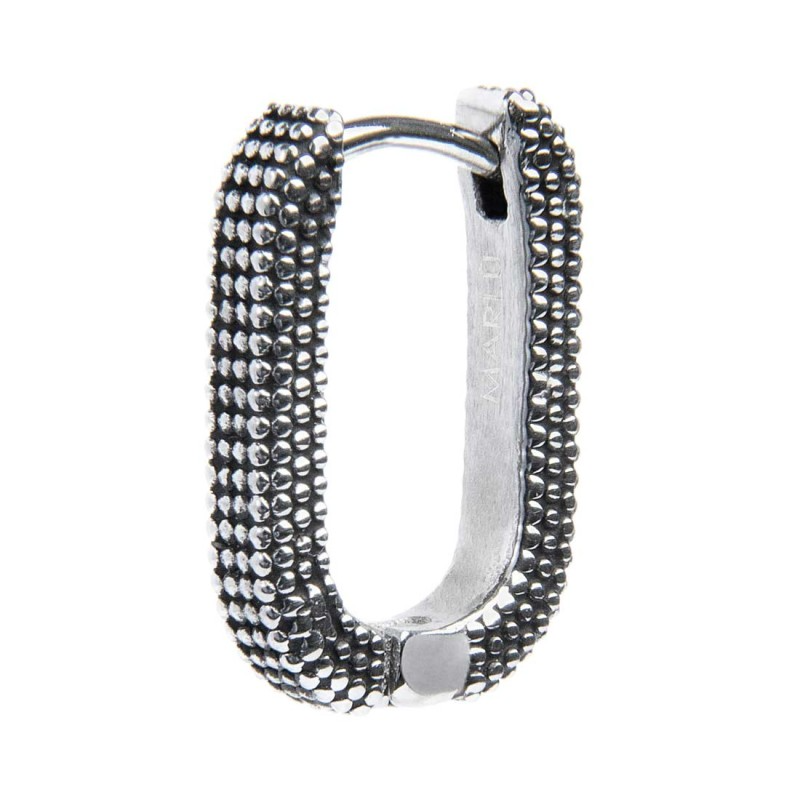 Monorecchino uomo marlù, 33OR0051-N, collezione vision, in acciaio ovale 1, 1*1, 6 cm, con trama puntinata con black oil opaco.