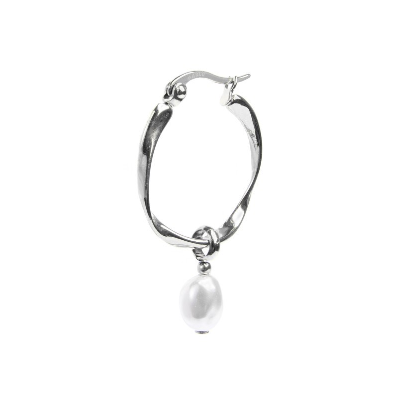 Monorecchino donna marlù, 33OR0063-W, collezione vision, in acciaio a cerchio irregolare con diametro 2, 2 cm, con perla ovale bianca rivestita pendente.
