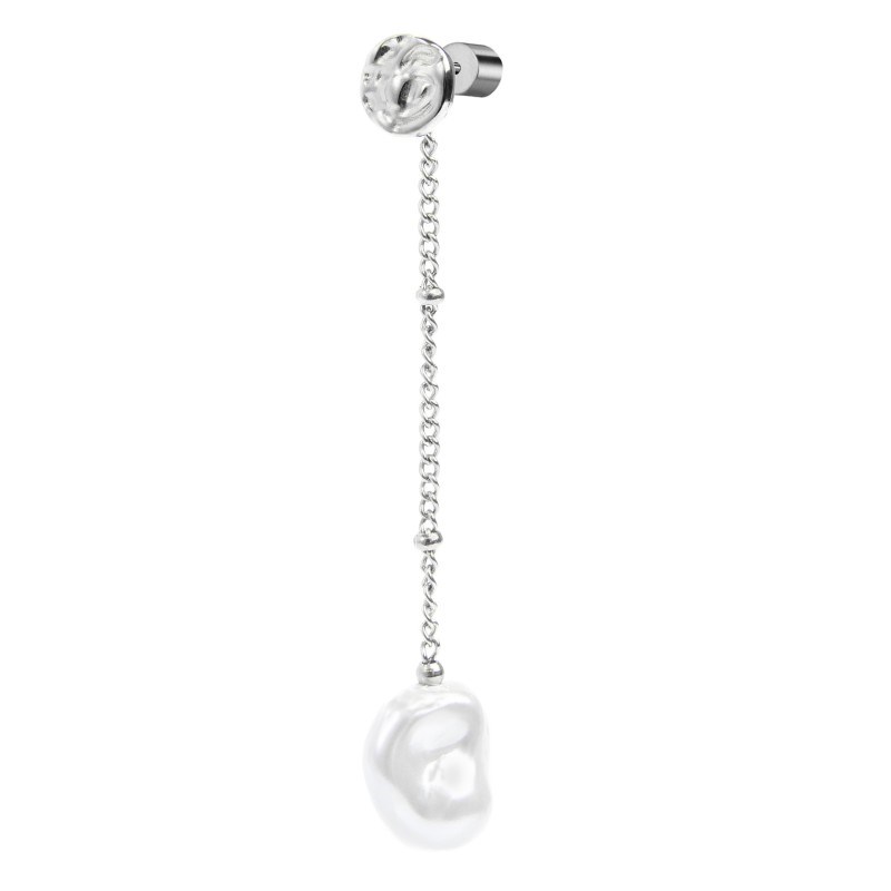 Monorecchino donna marlù, 33OR0064-W, collezione vision, in acciaio con orecchino a bottone martellato con pendente removibile composto da catena grumetta con sfere con perla bianca irregolare rivestita.