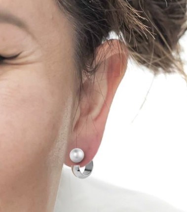 Monorecchino donna marlù, 33OR0072, collezione vision, in acciaio a cerchio aperto con diametro 1, 8 cm con chiusura aggiuntiva perla rivestita a bottone di diametro 10 mm.