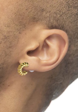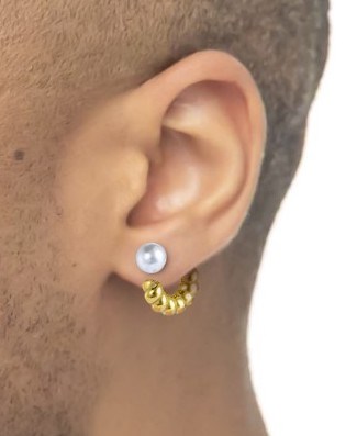 Monorecchino donna marlù, 33OR0076G, collezione vision, in acciaio a cerchio aperto con trama a treccia, lunghezza 1, 8 cm, con chiusura aggiuntiva perla a bottone di diametro 8 mm.