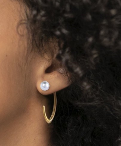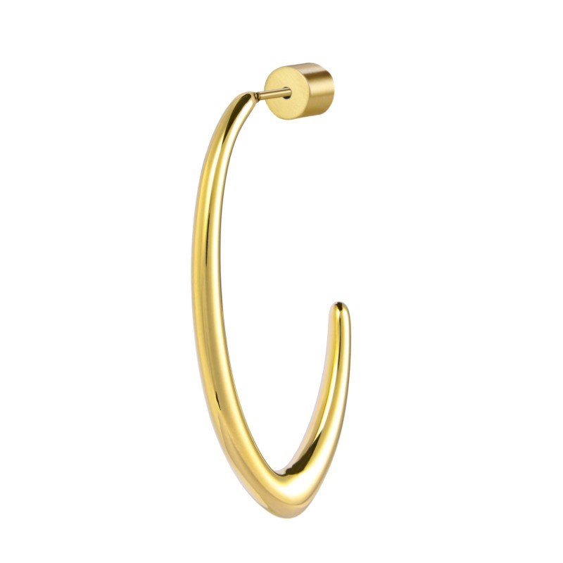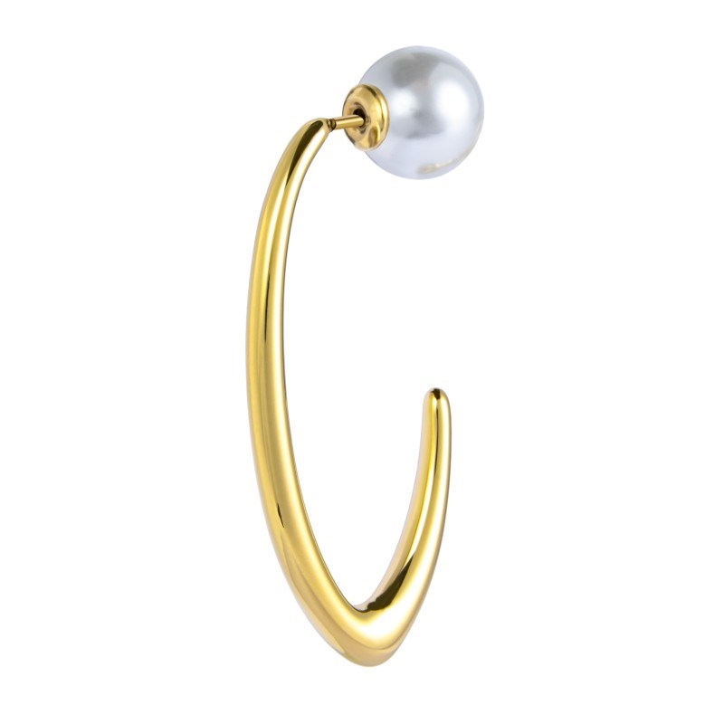 Monorecchino donna marlù, 33OR0078G, collezione vision, in acciaio dorato ovale aperto, lunghezza 4 cm, con chiusura aggiuntiva perla rivestita a bottone di diametro 10 mm.