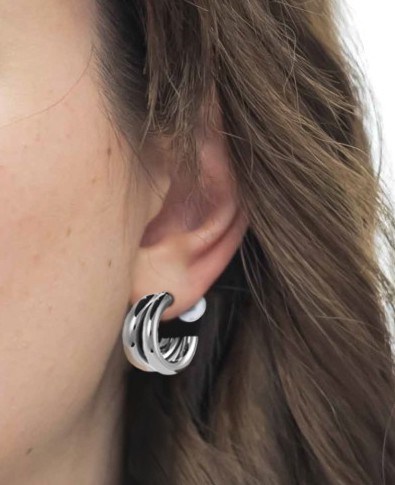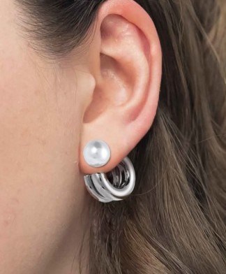 Monorecchino donna marlù, 33OR0083, collezione vision, in acciaio a cerchio doppio aperto con diametro 2, 1 cm, con chiusura aggiuntiva perla rivestita a bottone di diametro 12 mm.