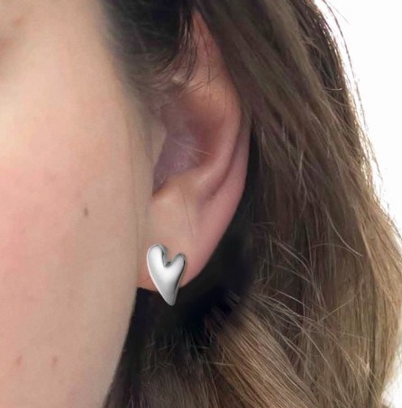 Monorecchino donna marlù, 33OR0089, collezione vision, a lobo in acciaio a forma di cuore irregolare martellato con misura 1, 1*1, 2 cm.