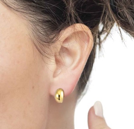 Monorecchino donna marlù, 33OR0091G, collezione vision, a lobo in acciaio dorato a forma ovale.