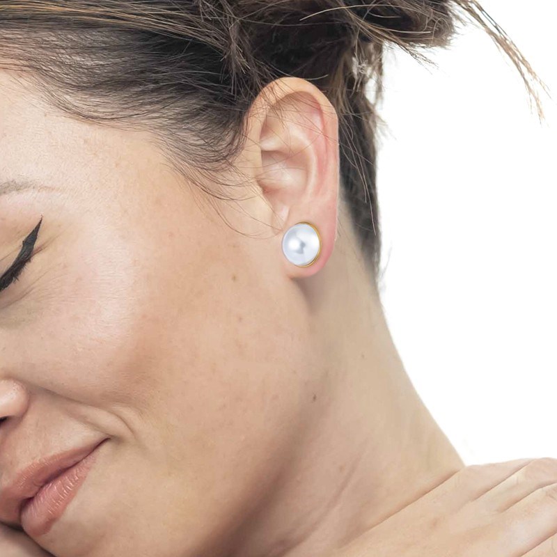 Monorecchino donna marlù, 33OR0092G-W, collezione vision, a lobo in acciaio dorato con diametro 1, 5 cm a bottone con mezza perla.