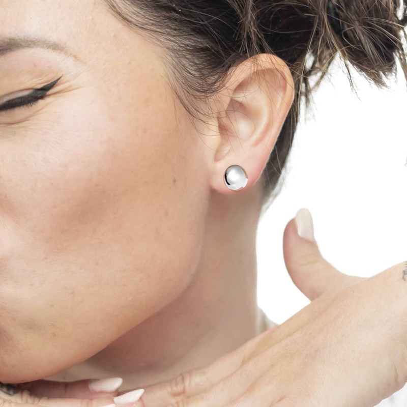 Monorecchino donna marlù, 33OR0095, collezione vision, a lobo in acciaio a bottone con diametro 1, 2 cm.