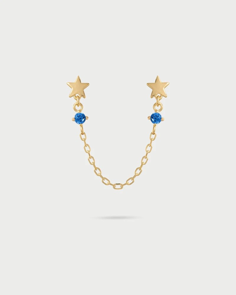 Mono orecchino donna Rue Des Mille, ORZ-024 M2 STE AU, collezione essence, in argento 925 placcato oro giallo 18kt e zirconi blu, dimensioni soggetto 0, 5cm