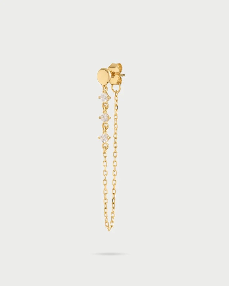 Mono orecchino donna Rue Des Mille, ORZ-024 M3 TD AU, collezione essence, in argento 925 placcato in oro giallo 18kt e zirconi bianchi, dimensioni soggetto, catenella 4cm