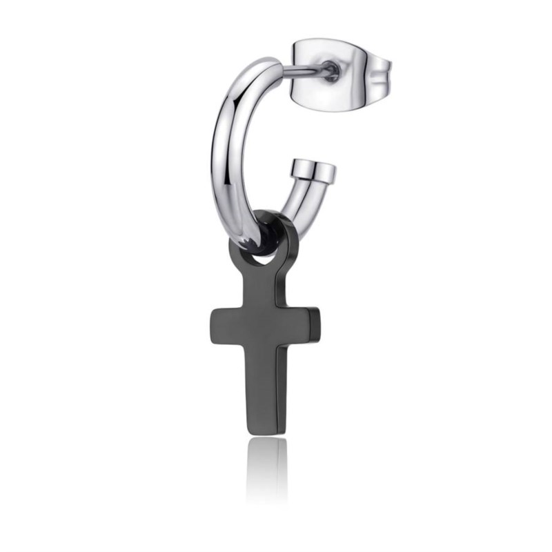 Mono orecchino uomo s'agapo, SNP30, collezione snap, in acciaio/acciaio nero, misura 22mm
