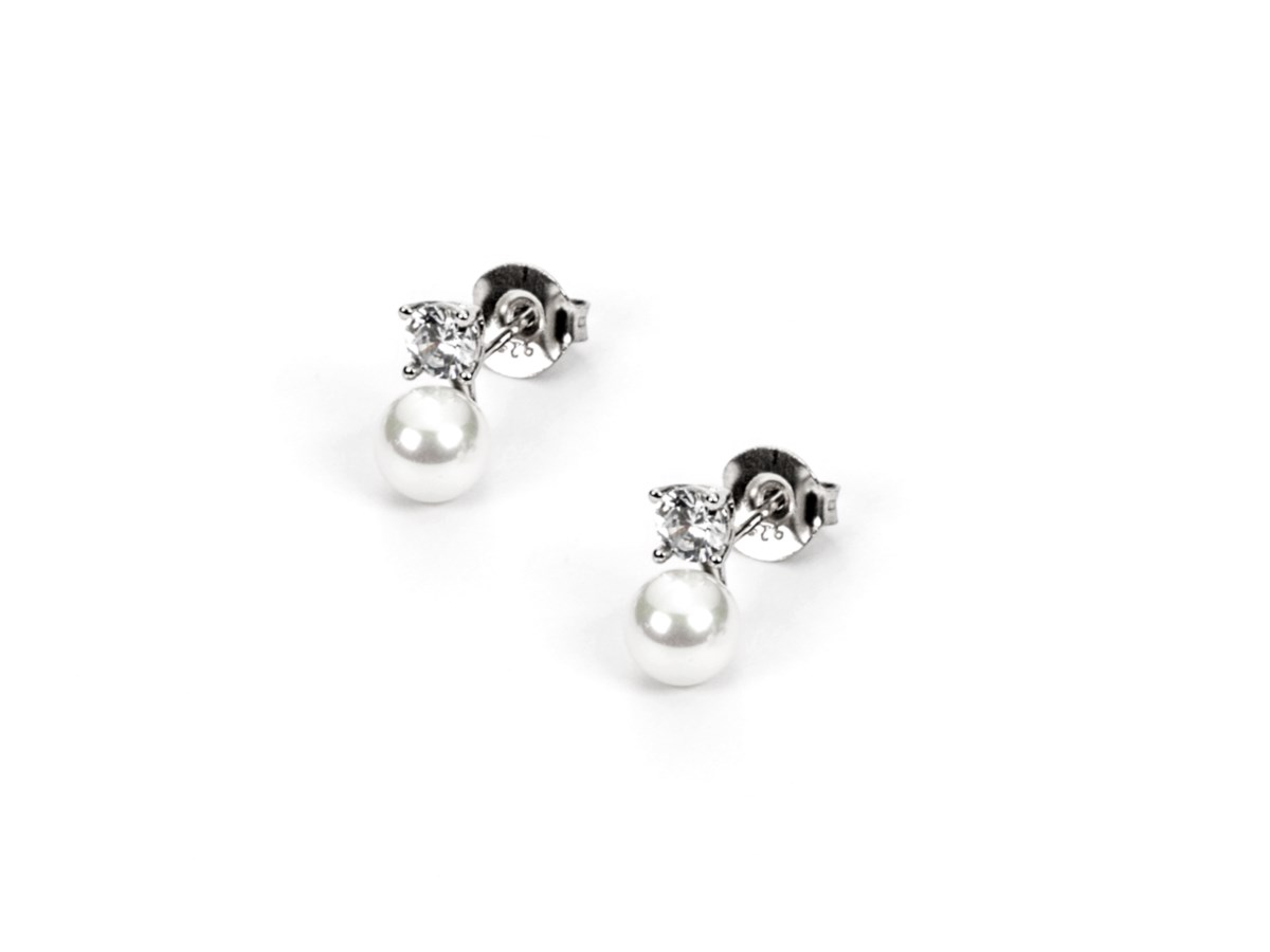 Orecchini donna 4us cesare paciotti, collezione autunno inverno, in argento 925 con zirconi e perla 6mm