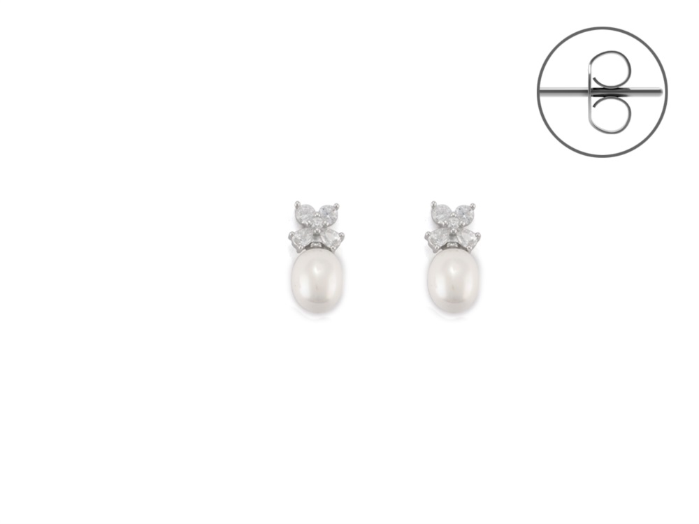 Orecchini donna 4us cesare paciotti, 4UOR6102W, collezione autunno inverno, in argento 925 rodiato con perle e zirconi bianchi, misura 1, 5cm