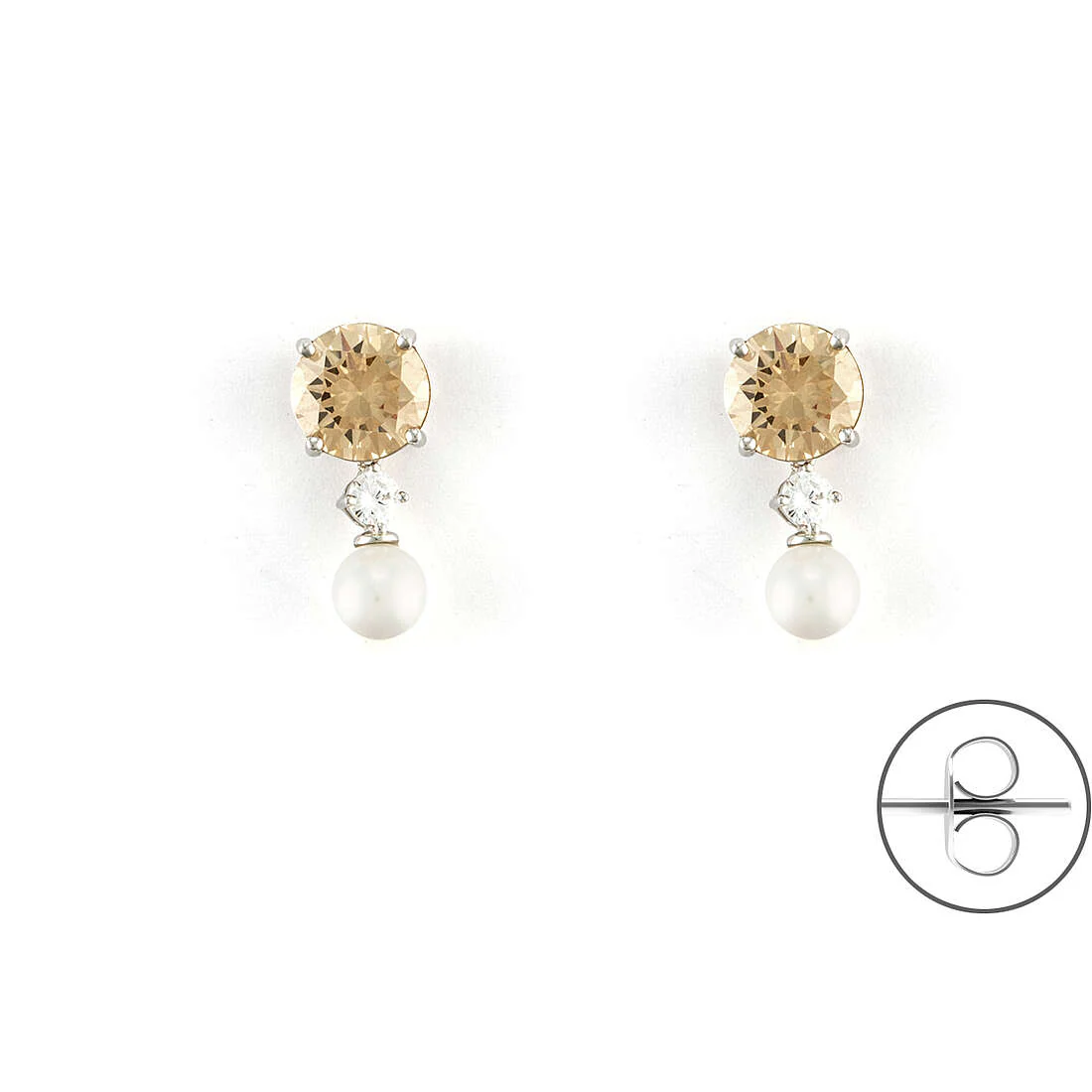 Orecchini donna 4us cesare paciotti, 4UOR6577W, collezione autunno inverno, in argento con zirconi gialli e perle