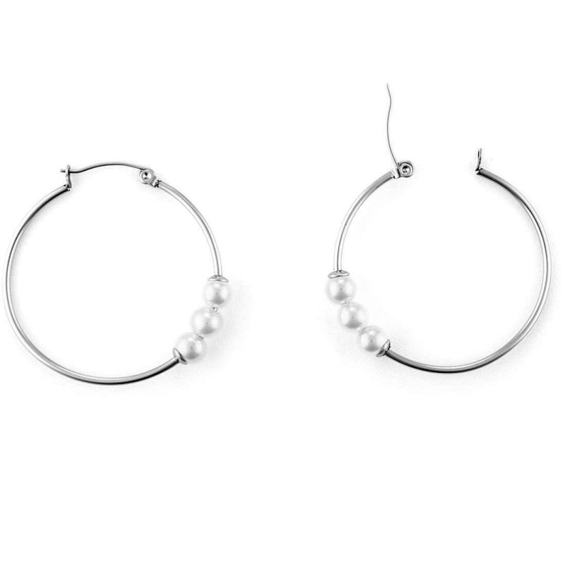 Orecchini donna 4us cesare paciotti, 4UOR6489W, collezione primavera estate, a cerchio in acciaio con perle. diametro 40mm.