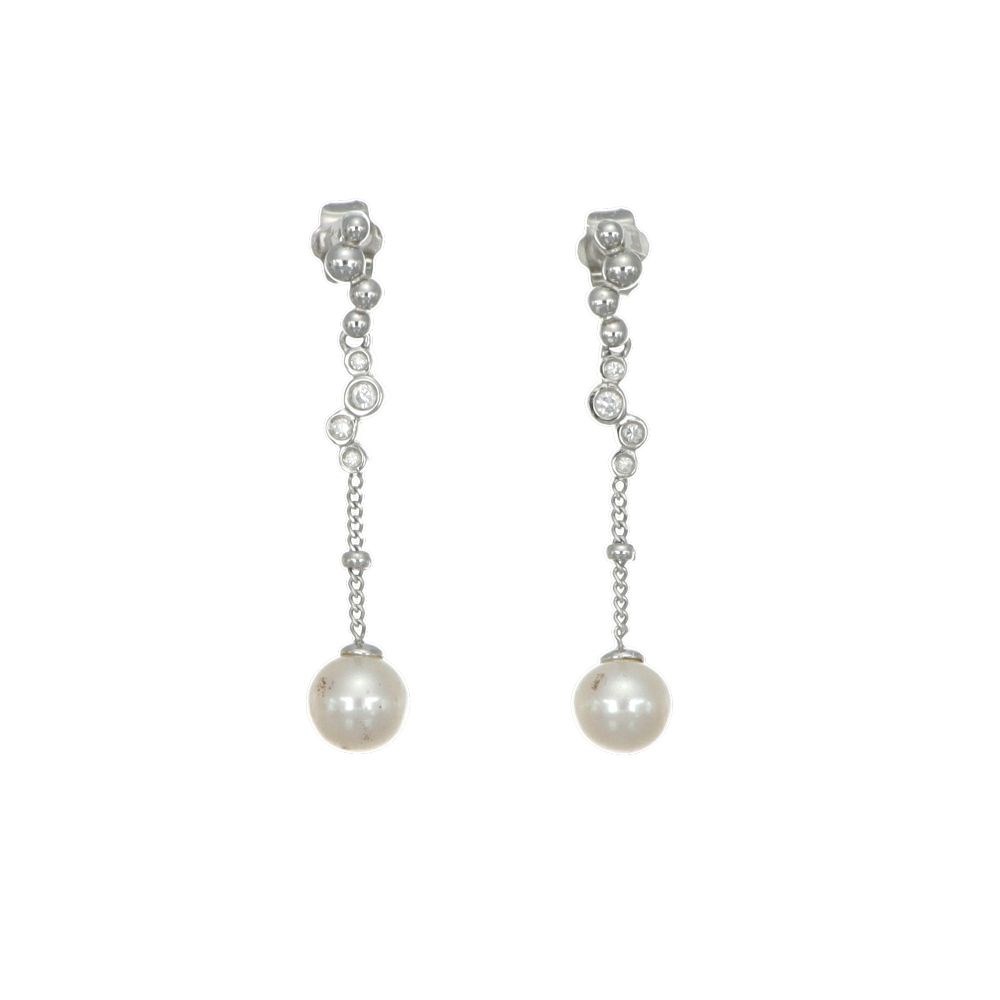 Orecchini donna ambrosia, AOP 008, collezione oro e zirconi orecchini, in oro bianco 18kt e zirconi, perle