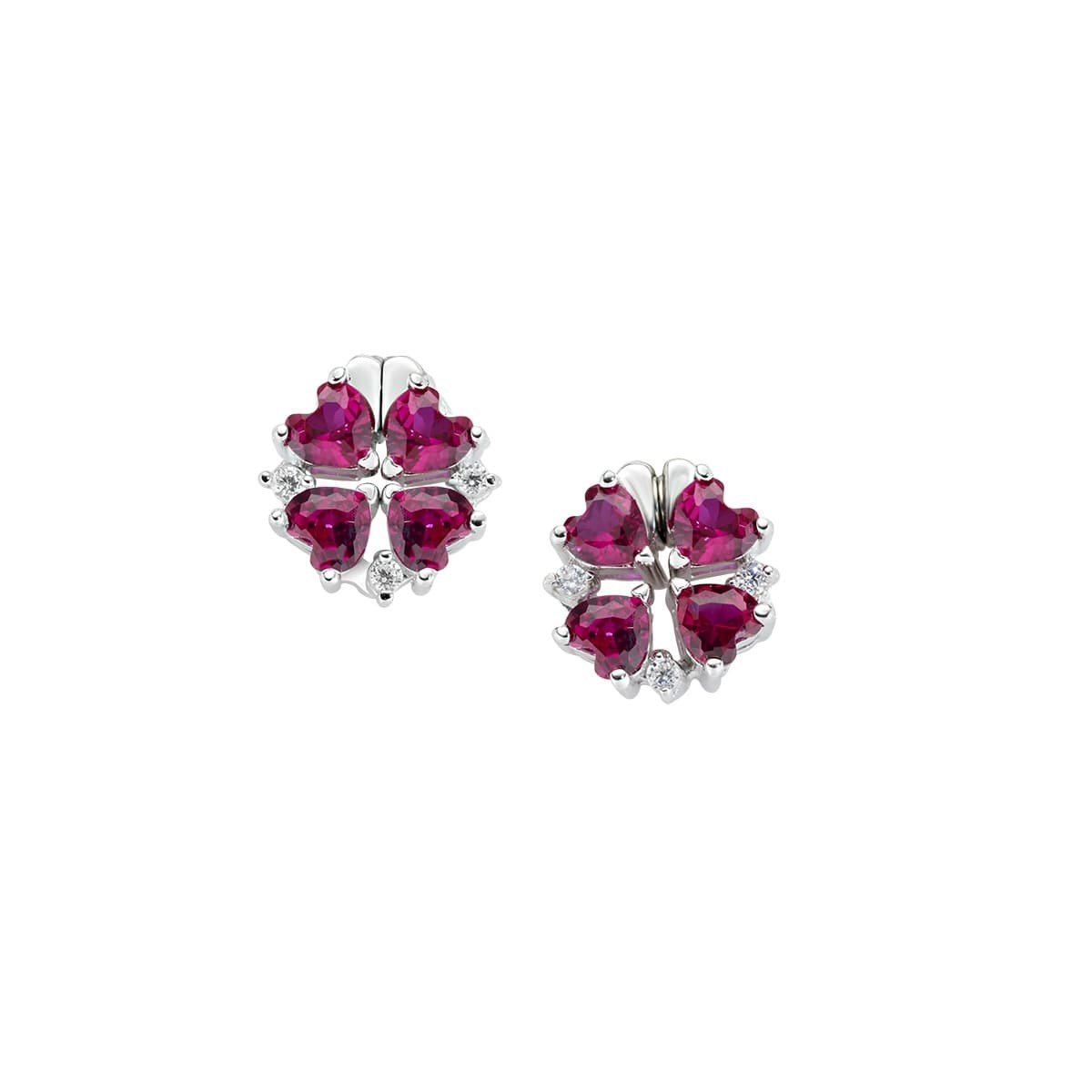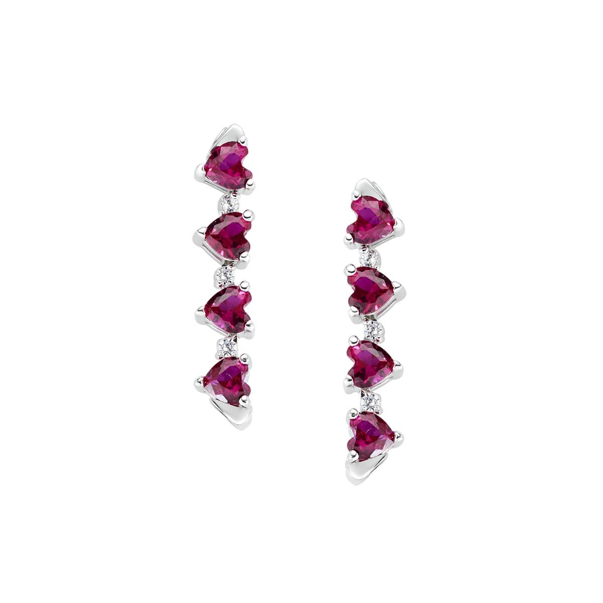 Orecchini donna amen, EMHBR, collezione amore, in argento 925 rodiato con zirconi rossi taglio cuore e zirconi bianchi.