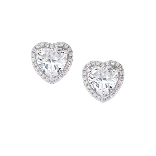 Orecchini donna amen, ETIHBBBZ, collezione amore, in argento 925 e zirconi bianchi a forma di cuore